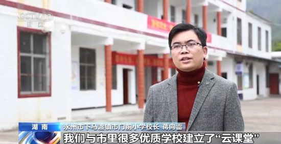 永州市下馬渡鎮市門前小學校長 蔣向雷:我們與市里很多優質學校聯合建立了“云課堂”,定期進行遠程網絡教學,讓學生們能同時聽到音樂、科學這些優秀課程。現在資源很豐富,給了我們鄉村教育提升的抓手。