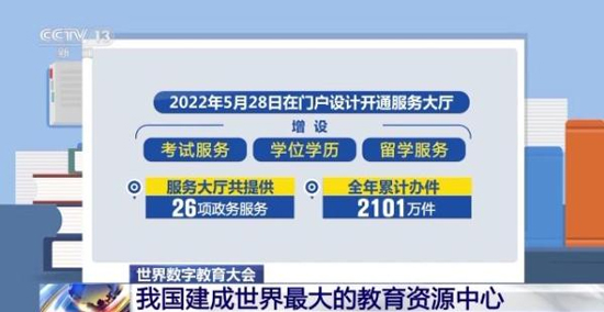 教育部相關負責人介紹,我國已建成世界最大的教育資源中心,國家智慧教育公共服務平臺用戶覆蓋200多個國家和地區,截至2023年2月10日,平臺總瀏覽量超過67億次,訪客量超過10億人次。