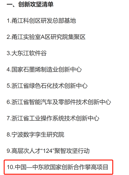 日前,全市“打造一流城市、躋身第一方陣”動員大會舉行,會上集中發布了包含30個項目的創新、改革、開放三張攻堅清單,寧波工程學院中國—中東歐國家創新合作研究中心為主申報的“中國—中東歐國家創新合作攀高項目”入選寧波市創新攻堅清單。