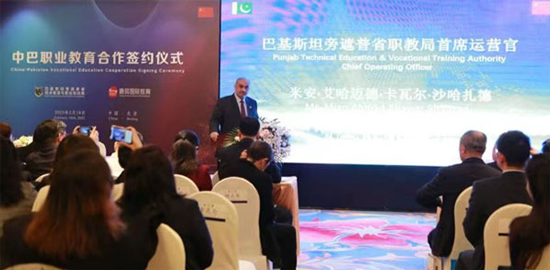 旁遮普省職教局首席運(yùn)營(yíng)官M(fèi)ian Ahmad Khawar Shahzad先生和信德省職教局執(zhí)行局長(zhǎng) Ghulam Mustafa Suhag先生,分別代表旁遮普省職教局、信德省職教局與中國(guó)多所職業(yè)院校簽署了CCTE現(xiàn)代化雙學(xué)歷聯(lián)合培養(yǎng)人才項(xiàng)目合作意向書(shū),標(biāo)志著中巴職業(yè)教育發(fā)展邁上新臺(tái)階。