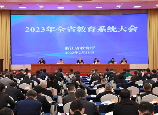 2月28日,2023年全省教育系統工作會議在杭召開。會議強調,要堅持以習近平新時代中國特色社會主義思想為指導,深入學習領會黨的二十大精神和省第十五次黨代會、省委十五屆二次全會部署,全面貫徹落實黨的教育方針,進一步認清形勢、統一思想、明確方向、搶抓機遇,努力辦好人民滿意的教育,奮力打造中國式現代化教育示范省。省委教育工委副書記,省教育廳黨組書記、廳長毛宏芳出席會議并作工作報告,省委教育工委專職副書記、省教育廳黨組副書記陳春雷主持會議。