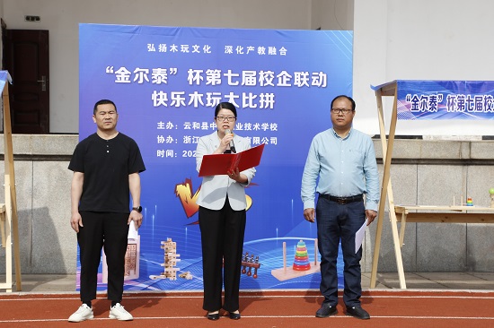 5月16日,浙江金爾泰玩具有限公司總經(jīng)理游小衛(wèi)、云和職技校副校長王柳娟、校產(chǎn)學(xué)研中心主任藍(lán)新章出席活動開幕式,開幕式由產(chǎn)學(xué)研中心副主任雷靜主持。