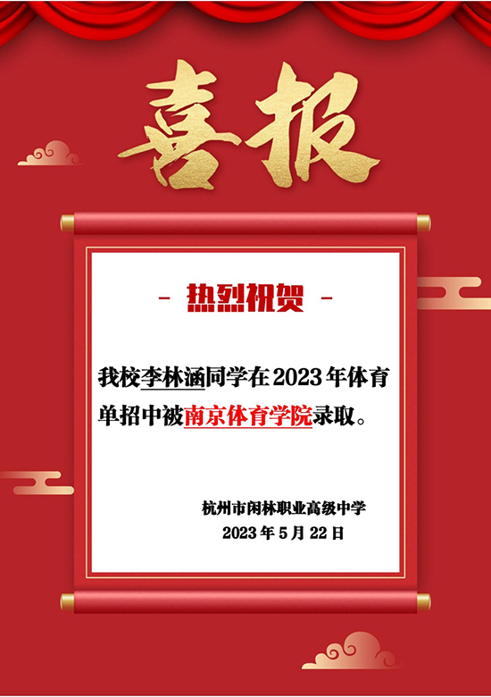 三年的風(fēng)雨兼程和披星戴月,如今金榜題名,這一切對于李林涵而言其成長的過程必將成為其寶貴的人生財富。在她身上,也讓我們看到職高生一樣可以成為本科生,職高體育生一樣可以成為名牌體育大學(xué)的本科生。