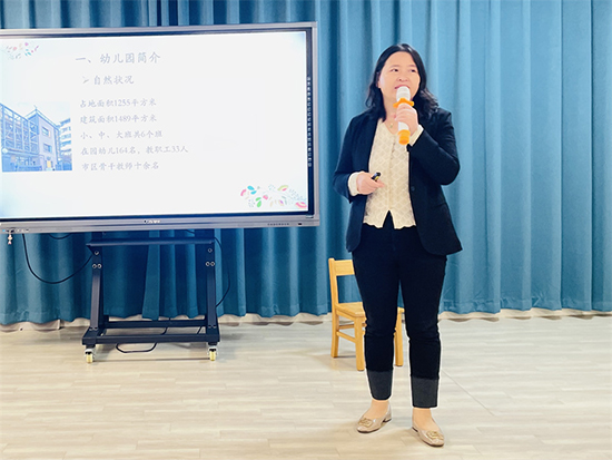 第二站來到了南京市九都薈幼兒園。首先,九都薈園部保教主任陳梅以問題驅動作《看得見資源,觀得到學習》專題講座,圍繞“資源”與“學習”,通過教師的觀念、策略的轉變以及教師本心的對話三個觀點,向老師們介紹了幼兒園如何幫助幼兒搭建游戲橋梁以及游戲開展的所思、所行,激發(fā)了老師們的深入思考。接著,大都薈園部保教主任徐慧以《有準備的戶外環(huán)境:讓幼兒在探索中學習》為題,從創(chuàng)設園所環(huán)境的支持,關注幼兒的經驗提升,主題活動最大限度支持幼兒游戲三方面進行分享,并力求幼兒園每處環(huán)境都能成為幼兒的教育契機。