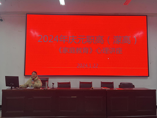 為加強教師的家庭教育理念,提升教師的家庭教育心理支持能力,1月22日,慶元縣職業(yè)高級中學開展家庭教育心理知識科普活動。此次活動以講座的形式開展,主題為《家庭教育——夫妻恩愛》,全校班主任參會。