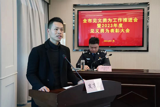 1月25日上午,嵊州市見義勇為工作推進(jìn)會暨2023年度見義勇為表彰大會在市公安局在召開。會議大力推崇和褒獎見義勇為的行為,嵊州市職教中心教師張東和保安周武合力救火的事跡受到了表彰,張東老師有幸作為見義勇為代表在大會上發(fā)言。