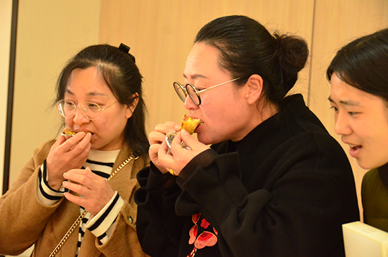 不一會(huì)兒,蛋撻的香氣在空氣中彌漫,金黃的外皮與鮮嫩的蛋餡相得益彰,讓人垂涎欲滴。當(dāng)烤箱的門(mén)緩緩打開(kāi),一股誘人的香氣撲鼻而來(lái)。女教師們紛紛上前,取出自己親手制作的蛋撻。蛋撻金黃酥脆,散發(fā)出誘人的光芒。女教師們品嘗著自己制作的蛋撻,臉上洋溢著滿(mǎn)足和幸福的笑容。