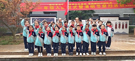 4月2日上午,諸暨市楓橋鎮王冕小學三賢廣場上隊旗飄飄,隊歌嘹亮,稚嫩的宣誓聲響徹云霄,一年級入隊儀式在此舉行。