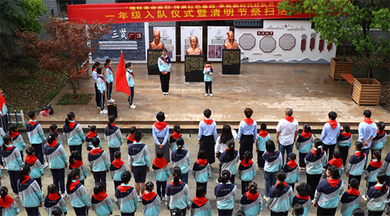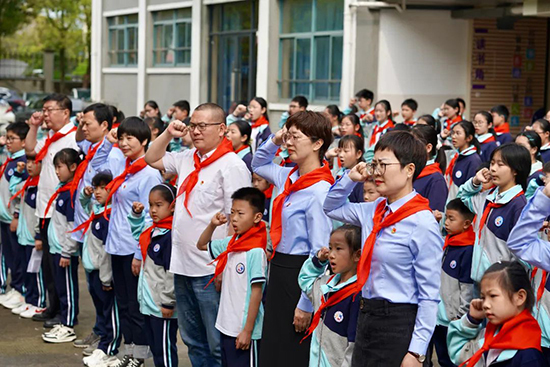 有一種顏色,飄揚在心中永不褪色,那就是紅領巾的顏色;有一種光榮,即使在多年以后回想起來,仍令人激動不已,那就是成為一名少先隊員的光榮。入隊誓詞在校園回響,昭示新隊員們為共產主義事業奮斗的決心和信心。高舉旗幟,砥礪前行,少先隊又注入了一股股新鮮的血液。