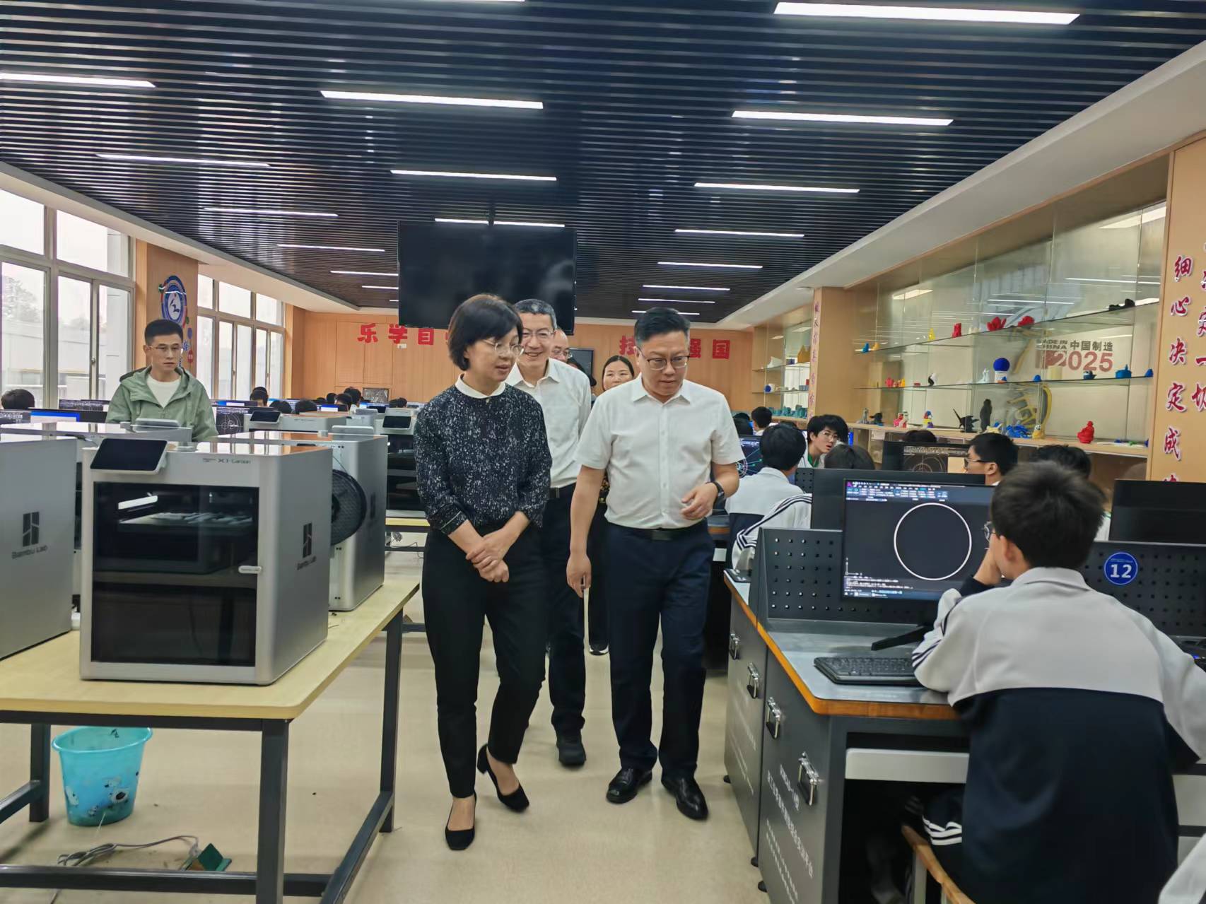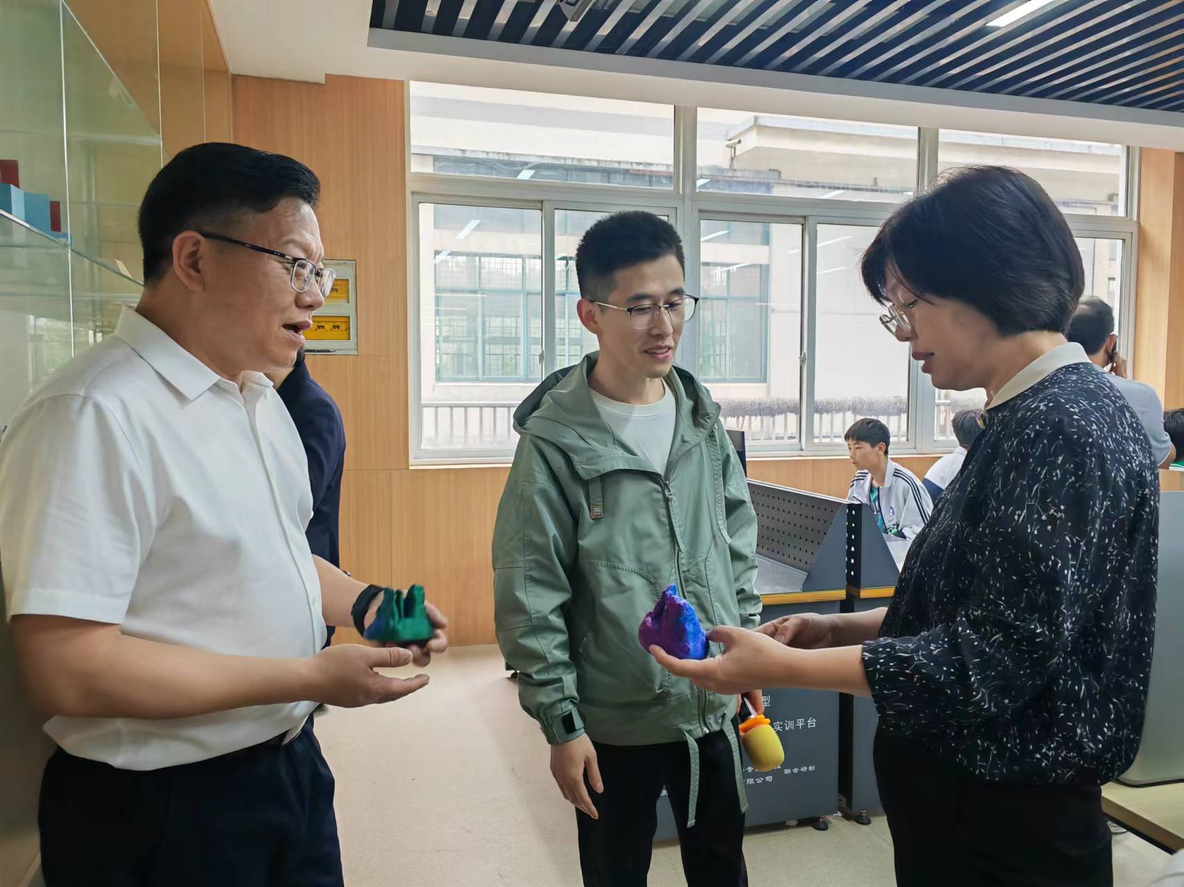 黃玲一行先后參觀了學校的3D打印、工業機器人、電商直播、家具設計、零部件測繪等實訓室。參觀過程中,校長徐凌志介紹了學校在校企合作、產教融合等方面的人才培養工作情況,特別是學校在政校行企協同育人模式上的創新與實踐。