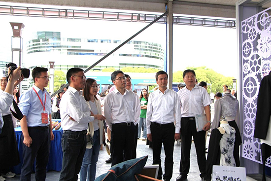 參展過程中,陳峰副廳長、孫君副市長、石劍晗局長等領導在學校展區駐足交流、互動,鐘建康書記、沈春紅副校長介紹學校特色專業成果。將服裝專業學生作品“清醒夢境”“水墨雕琢”“敦煌飛天”和花樣設計專業的個性化T恤定制作品一一欣賞,并給予了充分肯定。陳鋒肯定了學校在高水平專業建設和學生個性發展上的成功做法,鼓勵學校要聚焦加快構建現代職業教育體系,培養更多高素質技術技能人才。