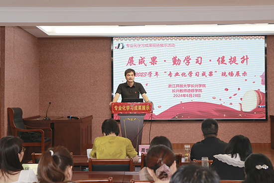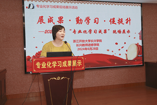 為進一步推進學院學習型組織建設,提高教師專業素養,發揮教師專業化學習成果的輻射引領作用,6月28日上午,長興開放大學進修學院精心組織了“展成果·勤學習·促提升”為主題的“專業化學習成果”展示分享活動,學院副書記孫甫永主持,全體教師參與。