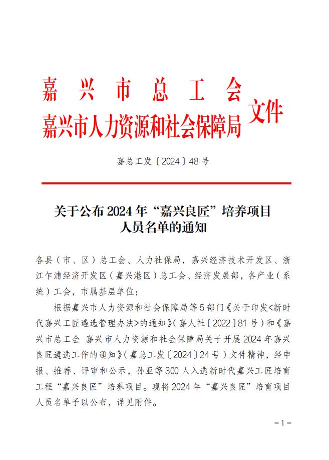 近日,2023年度“星耀南湖”拔尖人才計劃高技能人才、工程師人才項目入選名單的通知中高技能拔尖人才(嘉興巧匠),嘉興市交通學校周春輝老師榜上有名。從嘉興市總工會、嘉興市人力資源和社會保障局公布2024年“嘉興良匠”培育項目人員名單中獲悉,學校唐萍萍、朱彤輝兩位老師入選!喜訊連連,為他們點贊!