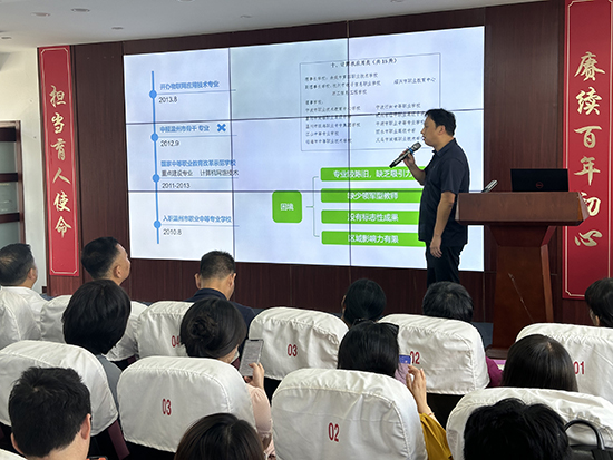 活動期間,學校特邀溫州市職業中等專業學校副校長、浙江省“萬人計劃”教學名師、浙江省特級教師、浙江工匠、浙江省春蠶獎、全國工業和信息化職業教育教學指導委員會委員、正高級講師、高級技師王恒心帶來主題為“物聯十年:我與我的團隊”的專題講座。