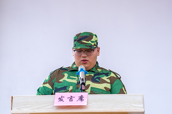 24商務2班彭浩軒代表全體軍訓學生鄭重承諾:將以飽滿的熱情和高昂的斗志,投入到軍訓當中,嚴格遵守紀律,聽從指揮,尊重教官,團結同學,努力完成各項訓練任務,展現出新時代青年的風采。
