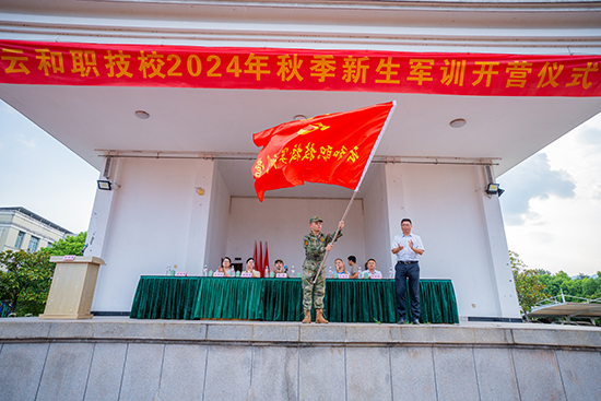 金威宣布云和職技校2024級新生軍訓正式開營。