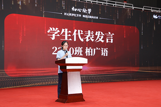 生物醫(yī)藥部2210班柏廣語同學(xué)作為優(yōu)秀學(xué)生代表上臺發(fā)言。她以夢想為主題,講述了她從學(xué)生會干部到專業(yè)技能提升,再到備戰(zhàn)本科考試的成長歷程。在挑戰(zhàn)中,她學(xué)會了堅持與不放棄。她堅信只要我們保持初心,勇于挑戰(zhàn),就能實現(xiàn)夢想。