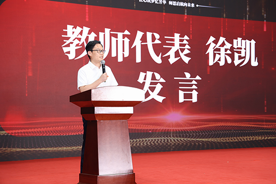 徐凱老師作為優(yōu)秀教師代表發(fā)言,他深刻闡述了作為新時代職業(yè)教育工作者的使命與責(zé)任,他強(qiáng)調(diào)我們應(yīng)當(dāng)積極踐行教育家精神,致力于培育具備可持續(xù)發(fā)展能力的高素質(zhì)、高技能人才,為我國新型生產(chǎn)力的提升貢獻(xiàn)堅實的人才基礎(chǔ)。在回顧自己的教育歷程時,徐老師分享了教育之路上的難忘瞬間、挑戰(zhàn)與困惑,通過他自己以及他的徒弟和學(xué)生的成長故事告訴我們,每個人都有自己的成長“時區(qū)”。徐老師堅信,每個孩子都是獨一無二的存在,我們要有啟智潤心、因材施教的育人智慧,努力發(fā)現(xiàn)并培養(yǎng)每個學(xué)生的特長與興趣,引導(dǎo)他們找到自己“時區(qū)”,讓每一位學(xué)生都能擁有出彩人生的機(jī)會。