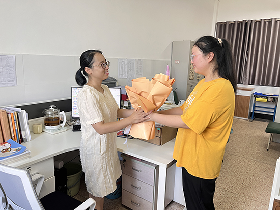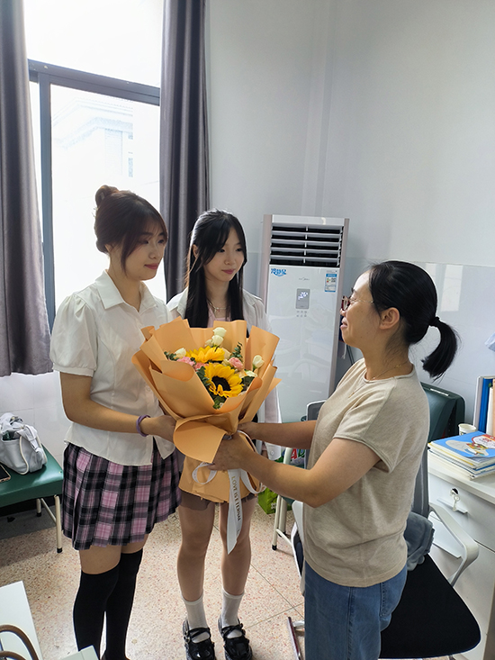 晨光初照,幾位捧花的青年,臉上洋溢著自信與幸福的笑容,緩緩步入熟悉的校園。他們的每一步都踏著青春的節拍,每一聲問候都飽含對過往歲月的懷念。在吳青霞老師的辦公室前,他們輕輕叩響門扉,仿佛打開了時光的大門,將三年的點點滴滴一一重現。