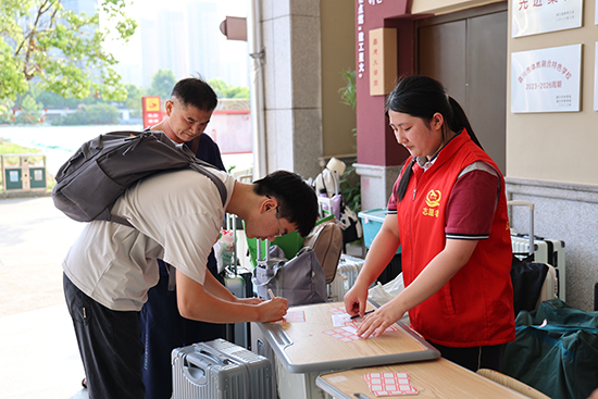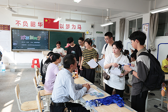 教室里貼心溫暖的歡迎板書,寢室床鋪上整齊擺放的生活用品,無不透露出班主任與教職工們的辛勤與關(guān)懷。一遍遍耐心指引,一趟趟手提肩扛,從報(bào)到注冊到交通指引,從行李搬運(yùn)到校園導(dǎo)覽,每一環(huán)節(jié)都力求盡善盡美。師生志愿者們雖額頭冒汗,嗓音漸顯疲憊,卻只是輕輕一抹汗水,匆匆潤喉,隨即以更加燦爛的笑容再次投入到緊張而有序的服務(wù)工作中。這些忙碌而充滿活力的身影,構(gòu)成了校園中一道亮麗的風(fēng)景線。