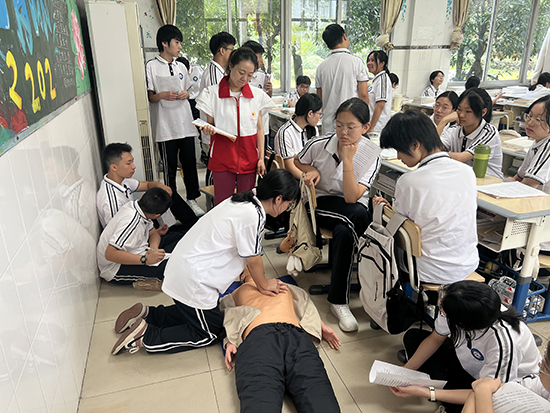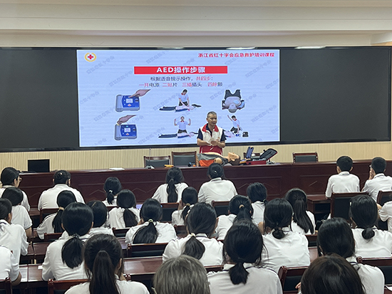 本次培訓(xùn)分為理論和實(shí)操兩個(gè)部分。學(xué)校特邀了江山市紅十字會(huì)應(yīng)急救護(hù)師擔(dān)任講師,通過(guò)生動(dòng)有趣的PPT展示、互動(dòng)問答、模擬演練等多種形式,深入淺出地講解了心肺復(fù)蘇術(shù)(CPR)、自動(dòng)體外除顫器(AED)的使用技巧、止血包扎、傷員搬運(yùn)等緊急救護(hù)知識(shí)與技能。同學(xué)們圍坐一圈,聚精會(huì)神地聆聽著每一個(gè)細(xì)節(jié),從識(shí)別心臟驟停的“黃金四分鐘”,到正確實(shí)施心肺復(fù)蘇的步驟,再到AED的規(guī)范操作流程,每一個(gè)環(huán)節(jié)都力求精準(zhǔn)無(wú)誤。