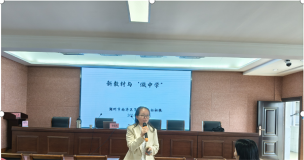 南潯區研訓中心初中語文教研員楊祖艷老師作了《新教材與“做中學”》專題講座,從新教材修訂過程、教材修訂的指導思想、總體原則和基本理念幾個方面對新教材進行了深入淺出地解讀,深入剖析新教材修訂之精髓,從整體上對新教材修訂的主要背景與總體原則、新修訂教材內容的“變”與“不變”等進行了系統全面的闡述,為教師們指明了教學的方向。