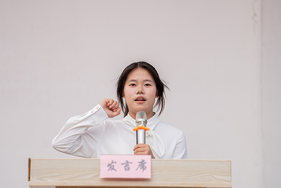 裁判員練張欽和24旅游2班學(xué)生潘艾莉分別代表全體裁判員和運(yùn)動(dòng)員進(jìn)行宣誓。