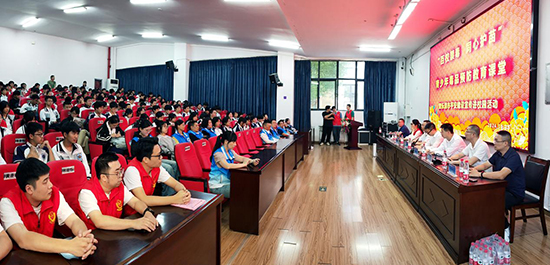 參觀禁毒基地后,領(lǐng)導(dǎo)們移步到一樓階梯教室參加主題為“百校禁毒 同心護(hù)苗”的青少年毒品預(yù)防教育講座。