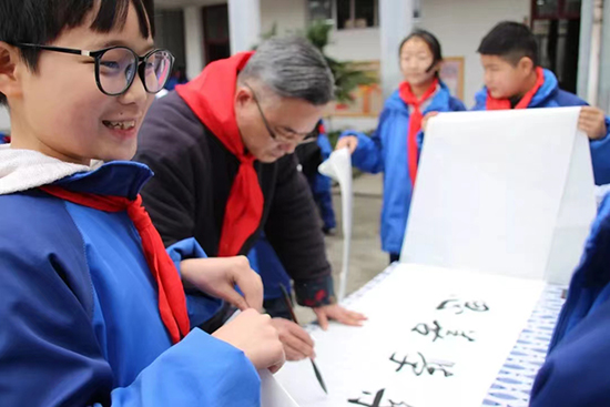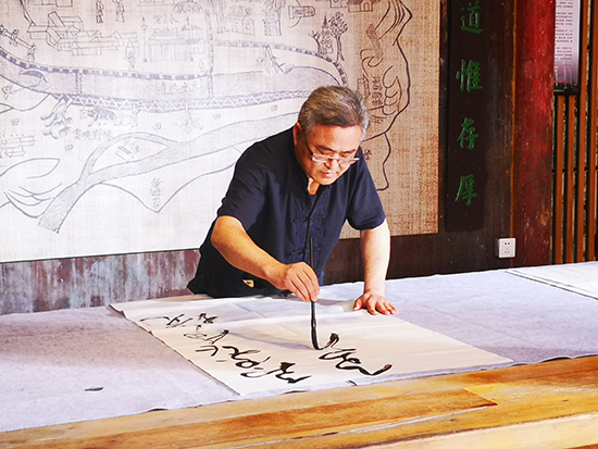 3.每逢春節,吳建其又帶著書法家們走進鄉村,為村民寫對聯接福迎春。并先后在馬金錢江源藝術中心、霞山鄉村美術館、下淤文化禮堂等地舉辦開化草書筆會。