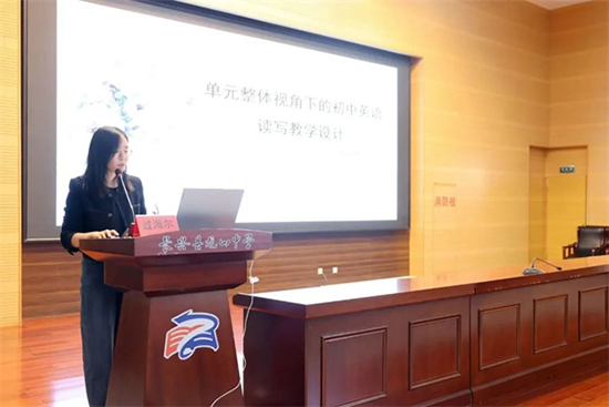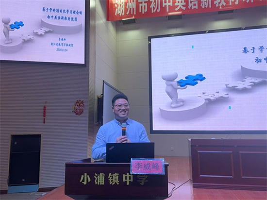 浙江省初中英語教研員李威峰帶來了題為《基于學科項目化理念的初中英語新教材使用》的講座。在講座中,李老師結合新教材的Unit 5單元,整體闡述了自己的項目化教學思路,同時圍繞教材研究、真實課堂、師生為本三點講述了如何用好新教材、如何上好一堂課。杭州市英語教研員曹群珍開展《單元整體視域下的七上教學建議》的講座。曹老師指出教師要理解學科邏輯、教材編寫邏輯、單元邏輯,鏈接生活邏輯,從而更好地理解教學邏輯和學習邏輯。紹興市英語教研員周智忠分享《基于理解看新教材的五個“有利于”》。他從有利于探究主題及主題意義、有利于實施單元整體教學、有利于推進知識向能力轉化、有利于實現教學評一致性、有利于開展跨學科實踐活動五個方面進行詳細闡述。三位專家從不同的角度解讀新教材,并結合案例給教師們分析了教學的方向,讓老師們進一步明確了新教材的理念、邏輯和實施策略。