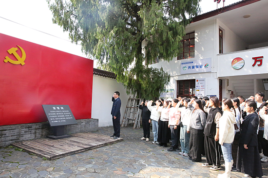在萬山革命歷史紀念館,全體黨員在校長張發的帶領下重溫了入黨誓詞,大家高舉右手,在黨旗下接受了心靈的凈化和洗禮,深刻體會到萬山人民“丹心”報國的初心使命。