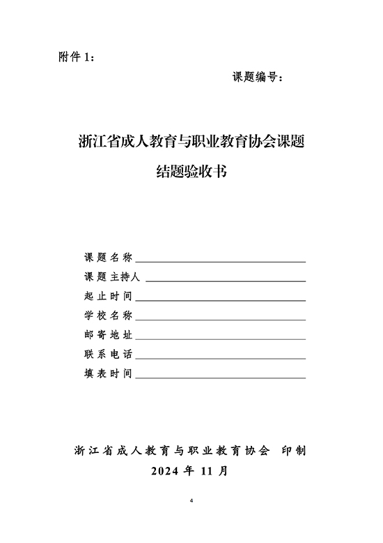 根據(jù)《浙江省成人教育與職業(yè)教育協(xié)會(huì)科研課題管理辦法》的相關(guān)規(guī)定,經(jīng)研究,決定開展2024年下半年浙江省成人教育與職業(yè)教育協(xié)會(huì)立項(xiàng)課題結(jié)題驗(yàn)收,現(xiàn)將有關(guān)事項(xiàng)通知如下:
