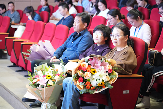 儀式開場,大屏幕播放了致敬退休老師的贈語,凝練地總結(jié)了他們對教育的熱忱和在崗位上的貢獻。老師們眼中滿是感慨與不舍。在一片溫暖而深情的氛圍中,陳榮校長和林芳副校長向到場的周辰善、錢瑛、張雋瑾三位老師送上了鮮花以及由前任校長陳劍峰親筆書寫的學校的贈語對聯(lián),以此向他們多年來的辛勤工作表示肯定和感謝。