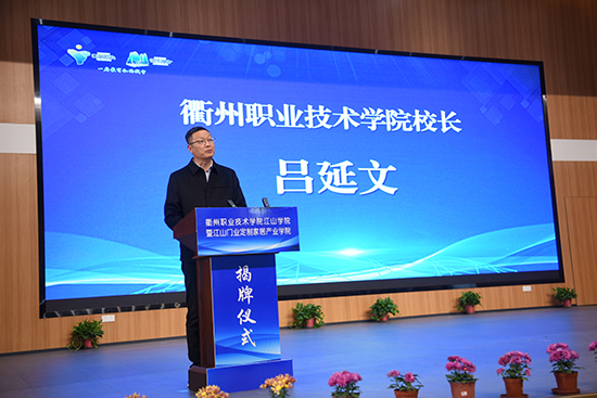 衢州職業技術學院黨委副書記、校長呂延文表示,此次揭牌儀式是衢州職業技術學院與江山市政府、江山市門業協會、衢州第二中專深化產教融合,服務地方經濟發展的重要舉措。他強調,衢州職業技術學院江山學院暨江山門業定制家居產業學院將圍繞江山市主導產業和新興產業發展需求,精準對接企業標準,優化課程體系,強化實踐教學,努力培養出更多符合市場需求的高素質技能型人才。他表示,衢州職業技術學院江山學院暨江山門業定制家居產業學院將進一步加強與政府、企業等各方面的溝通協作,努力辦出特色、水平、成效,成為服務江山市經濟高質量發展的生力軍。