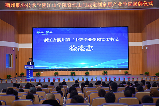 12月3日,衢州職業技術學院江山學院暨江山門業定制家居產業學院揭牌儀式在衢州第二中專隆重舉行,標志著校企合作、產教融合邁出了堅實的一步。