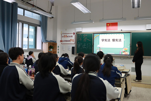 主題班會課上,各班班主任深入淺出地向同學們講述了憲法相關知識,介紹與未成年人息息相關的法律法規,引導學生深入了解憲法的重要性以及對日常生活的影響,增強學生的法治意識,學會用法律的武器保護自己,倡導學生從守紀做起,樹立正確的價值觀,共同營造文明、友善、和諧,充滿正能量的校園。