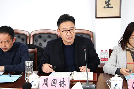 隨后,在行政樓五樓會議室,校黨委書記周國林發表了歡迎辭,并作了題為《弘揚蓮文化,賡續匠情懷》的報告。周書記詳細介紹了學校的基本情況和發展目標,重點分享了學校在人才培養、校企合作和產教融合方面的成功經驗。期間,雙方還就高考和技能競賽如何兩手抓、兩手都硬的問題進行了深入交流。