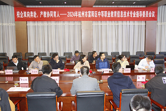 為全面深化校企合作、促進產教融合,加快信息技術人才培養與數字產業發展相匹配,共同提升專業建設水平和人才培養質量。12月11日,杭州市富陽區中等職業教育信息技術專業指導委員會會議在富陽區職業教育中心九樓報告廳順利召開。本次會議的主題是“校企雙向奔赴,產教協同育人”。富陽區經濟和信息化局數字經濟科科長方晨晨、杭州科技職業技術學院物聯網技術學院院長楊悅梅、副書記何劍敏、杭州市電子信息職業學校正高級教師、副校長佘運祥、浙江育英職業技術學院網絡專業負責人易明升、富陽區職教中心校長夏峰巍和副校長章文泉等領導出席會議。本次會議由信息技術專業部副部長徐揚程主持,另有十余家校企緊密合作企業代表與會。