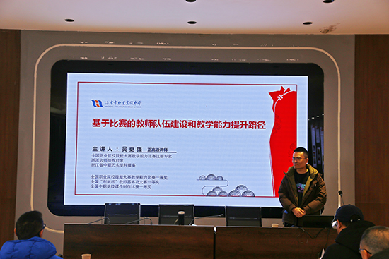 12月19日,全國教學能力大賽一等獎獲得者、海寧職高正高級講師吳更強給學員們分享了《基于比賽的教師隊伍建設和教學能力提升路徑》專題講座。吳老師從“依靠朋友圈和信任圈”“依靠真實的教學”“思考濃縮的教學”三個維度介紹了教學能力大賽“是什么”“為什么”“怎么做”。在“真實的教學”環節詳細闡述了“教什么”“為什么教”“怎么教”。吳老師還系統地解讀了全國教學能力大賽的文件精神,分析了參賽要求、評分要點,分享了備賽過程和心得體會,并對學員們的提問進行了交流指導。