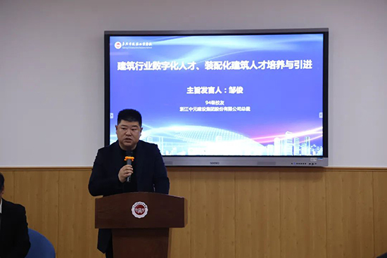 在論壇發言環節,三位杰出校友做主題發言。88級校友、浙江同安建設有限公司總經理呂平發言主題為現代建筑智能化、綠色化建設探索;98級校友、浙江中技企業運營管理有限公司董事長朱停玉發言主題為存量時代中小企業競爭與發展;94級校友、浙江中元建設集團股份有限公司總裁鄒俊發言主題為建筑行業數字化人才、裝配化建筑人才培養與引進。三位校友暢敘對母校和老師們深厚的感情,以自身企業或項目為例,探索新形勢下建筑行業發展的新路徑,表示將進一步加強與母校之間的合作與交流,共同促進母校事業的高質量發展。