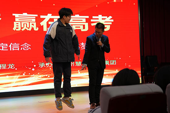 程龍老師的演講生動有趣,引人入勝,成功地引起了大家的共鳴。在他的帶動下,很多同學積極與程老師互動,并紛紛主動上臺高聲喊出自己的口號,表明自己的決心和信心。