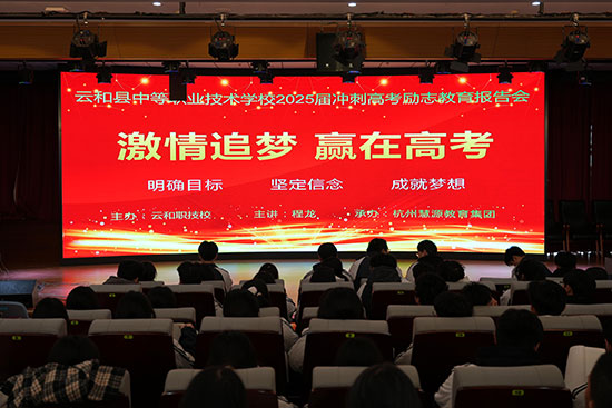 12月18日,云和縣中等職業技術學校舉行2025屆沖刺高考勵志教育報告會。報告會特邀全國知名勵志演說家程龍老師,為全體高三師生帶來了一場精彩紛呈的勵志演講會。