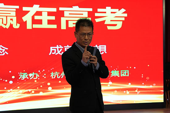 程龍老師以《激情追夢 贏在高考》為主題,從情緒管理的角度出發,指出“行為創造情緒,情緒影響狀態,狀態影響結果”。他強調了學會管理和調節情緒的重要性,認為只有當一個人能夠有效地控制自己的情緒時,才能更好地應對生活中的各種挑戰,并提出了“開口才能開心,開心就能開悟”的觀點,鼓勵同學們積極面對困難,保持樂觀的心態。