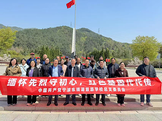 為弘揚革命精神,激勵黨員教師堅定理想信念、踐行初心使命,4月2日,寧波東錢湖旅游學校總支委員會聯合莫枝村黨支部赴樟村四明山革命烈士陵園開展“緬懷先烈守初心,紅色基因代代傳”清明祭掃活動,并走訪中國歷史文化名村李家坑村,實地調研鄉村建設成果,汲取奮進力量。學校楊海如書記和莫枝村盛瑜書記率領黨員代表參加。