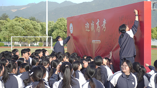 伴隨著入場音樂與全體老師熱烈的掌聲,高三學子們通過成人門,與所有老師擊掌鼓勁,帶著對未來無限的希望在簽名板上留下了屬于他三年云職學習生涯的印記。