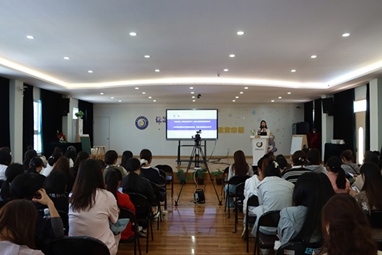 顏申君向與會人員介紹了學校的辦學情況,并表示,很榮幸能夠作為玉環市學前教育教師培訓基地,為每個心懷教育的老師提供高質量、專業的培訓服務,為教師們搭建一個學習與交流的平臺。
