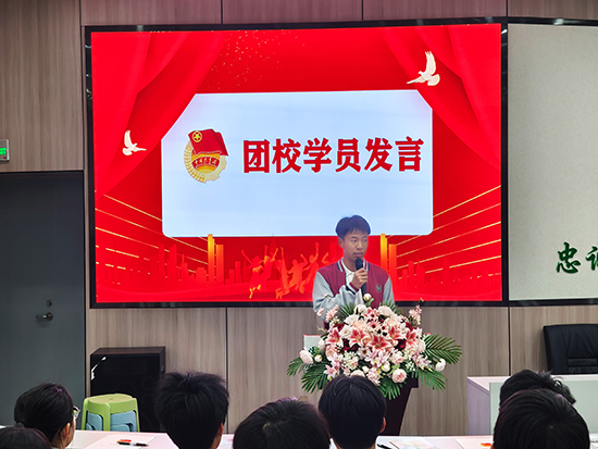 來自高職預科2401班的徐子煊同學代表學員發(fā)言。他認為成為團校學員既是新責任,更是新使命,并承諾:要堅定理想信念、勇于擔當作為,努力在實踐中磨礪意志、在奮斗中書寫青春,爭取早日成為一名光榮的共青團員。