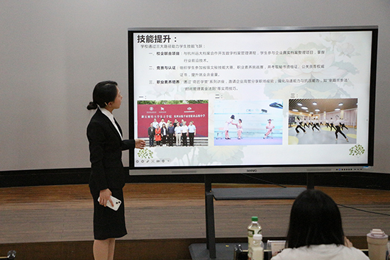 本屆技能節開幕式當天在學校小劇場拉開序幕,臨平區第一幼兒園副園長李玨;臨平區教育發展研究學院辦公室主任、教研員周黎霞,教研員馮國民;杭州博翱教育咨詢有限公司總經理李曉東;杭州格越教育科技有限公司總經理任磊;杭州妙道科技有限公司總經理丁志明;余杭國際旅行社總經理孫亮;浙商開元名都酒店餐飲部經理張李月;杭州市臨平商貿職業高級中學校長沈琪、學校黨委書記邵曉舟,及學校領導班子、中層干部,家長代表、學生代表齊聚一堂,共赴這場技能與夢想交織的盛會。
