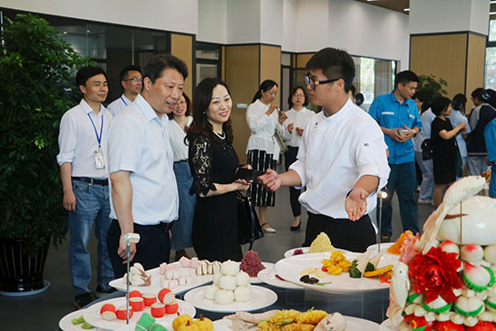 會后,與會人員觀摩了多工序數控機床操作調整工技能競賽,參觀了海寧技師學院技能實訓中心和海寧市職業教育教學成果展,近距離觀摩“工匠們”的精湛技藝,在技能展示區近距離欣賞了學生們的匠藝作品。