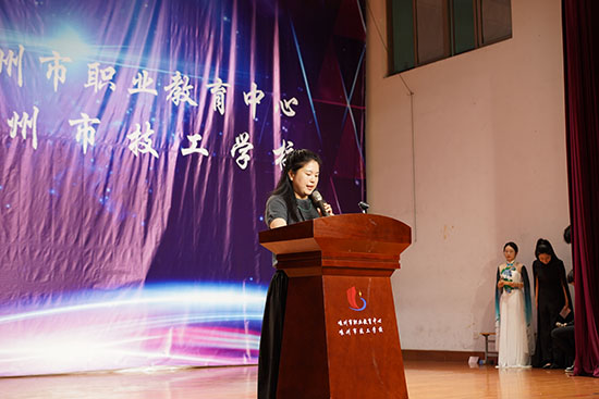 22學前教育班沈巧琳同學作為學生代表發言,她感謝提供技能沃土的母校,感謝悉心教導的老師,感謝并肩作戰的同學,也感謝那個懂得堅持的自己。她不無自豪地回憶獲得全國獎牌的過程,訴說她堅定走出彩人生的決心。高三優秀教師代表錢佳音老師勉勵學子們“永葆赤子之心,勇擔社會責任,用智慧與汗水書寫無愧于時代的青春答卷”。